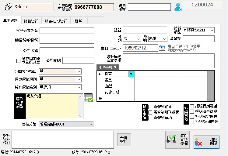 完善記錄客戶資料、預約、消費、異動紀錄等-隨時清楚掌握客戶資訊