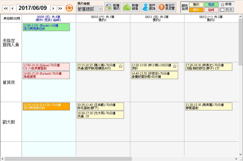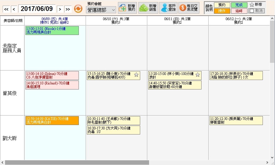 自行設定預約表版面-無論儀器床位美容師醫師預約,版面自行設計