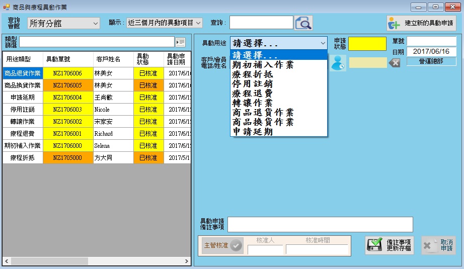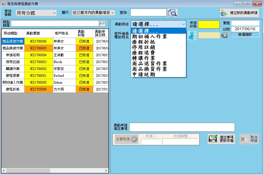 療程異動